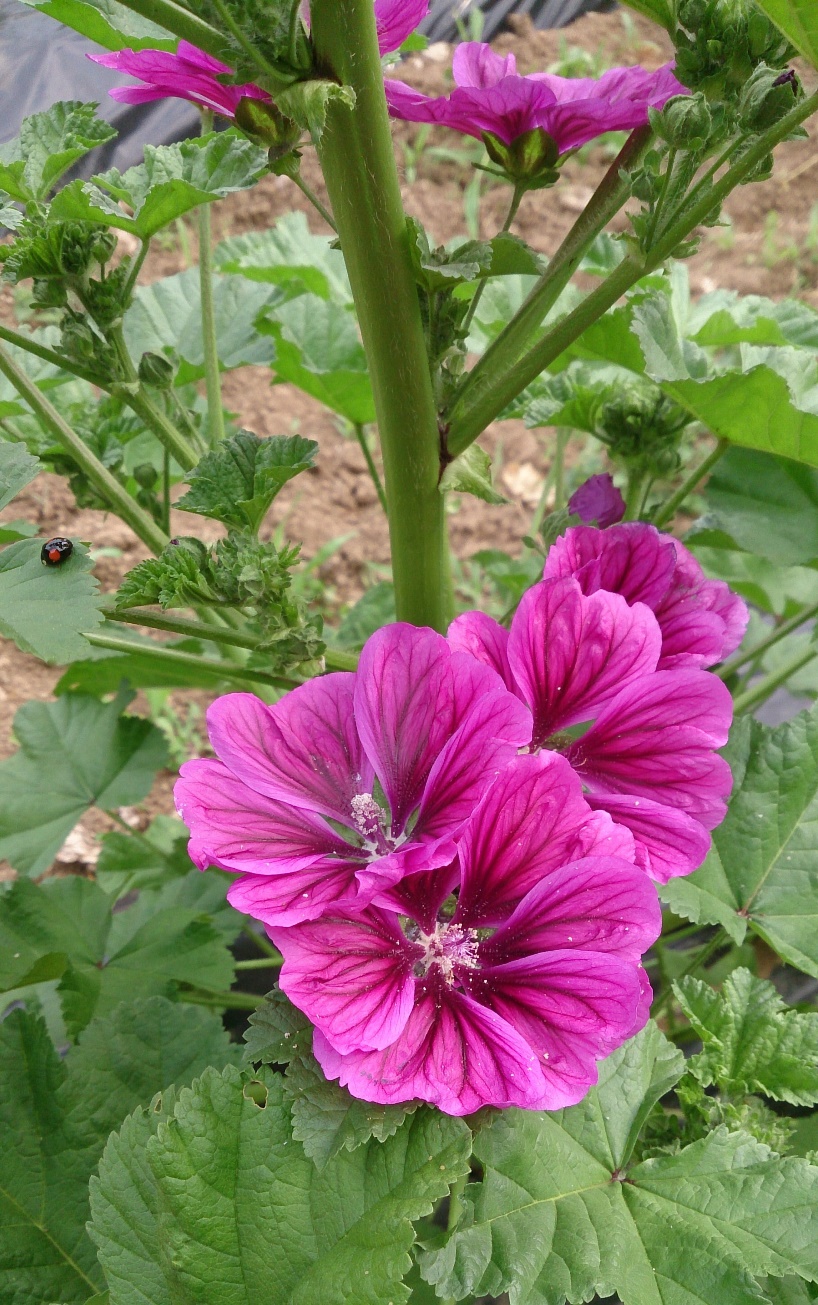 1株だけマロウ(ゼニアオイ)の開花が始まりました。咲き始めの花は大きいですね。