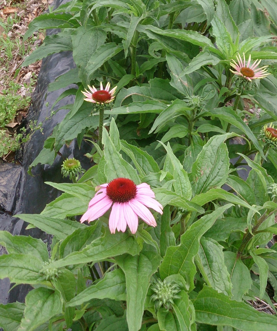エキナセア(ムラサキバレンギク)も少し早く花が咲き始めました。次第に花数を増やしながらまだまだ大きく生長を続けます。