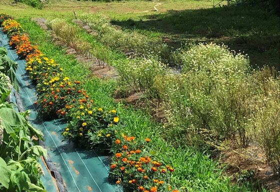 マロウ(ゼニアオイ)は刈り取った根元から再び花茎が伸び小さなお花畑となっています。このように日照不足やそれによる気温推移、多雨などがハーブの生育にいろいろな影響として現れ、今年は特にこれらの事象にタイムリーな対応を必要としました。自然とともに、自然を相手に行う有機栽培だからこそ手間暇はかかりますが、これが醍醐味でもあります!