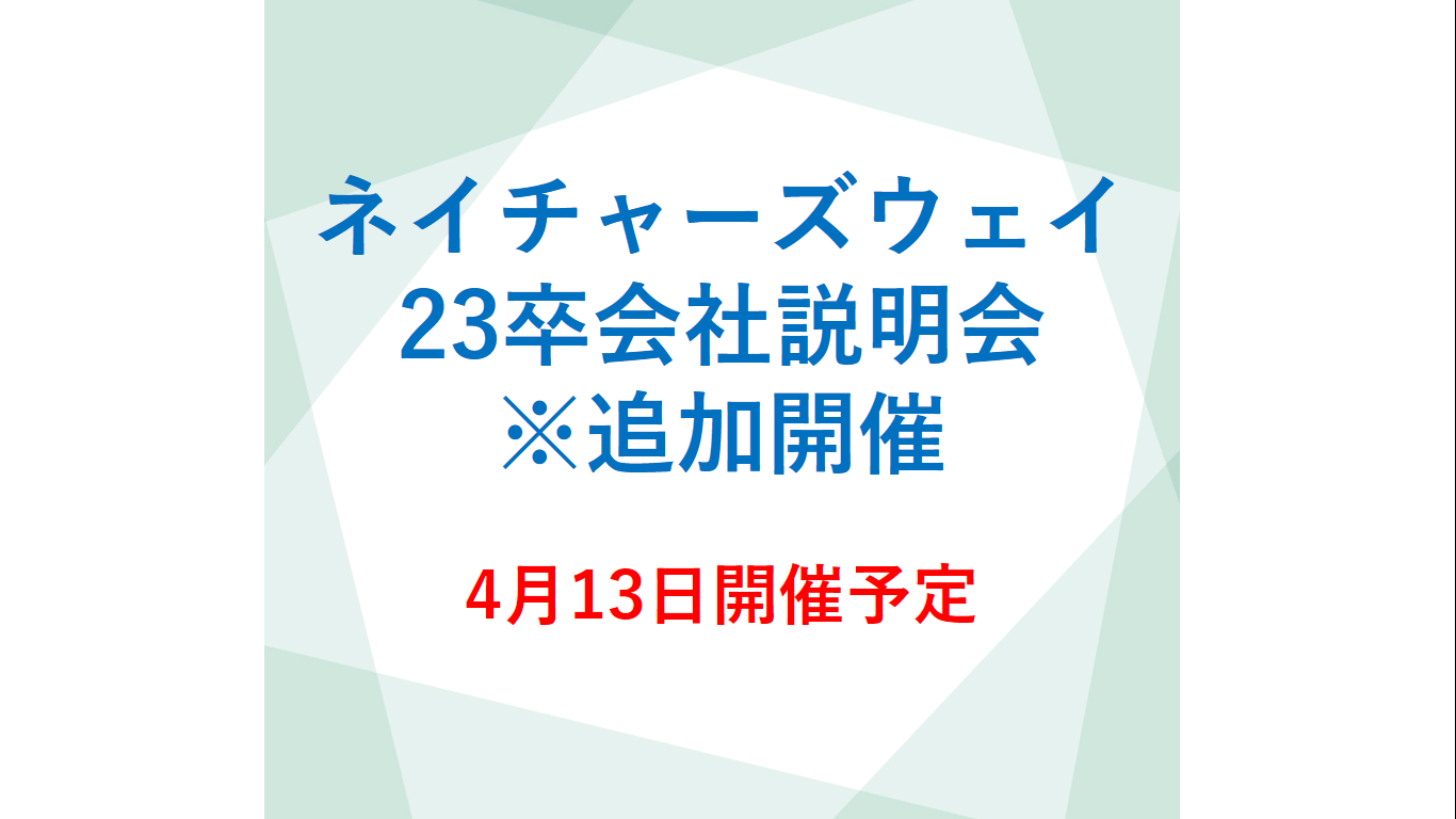 ネイチャーズウェイ23卒会社説明会 エントリー締切:4/4(月)17:00※受付終了しました