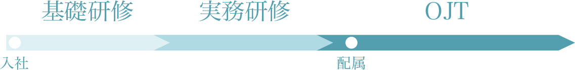 部署に配属後は、先輩社員が教育担当としてOJTにより研修を行います。