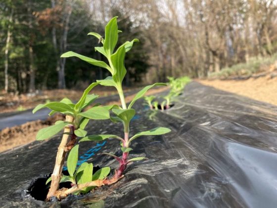 自社農場で育てるハーブは20種類以上。種まきや苗を植えた後には、冷たい風から守るため、上からもみ殻を敷き詰め、厳しい環境下での初期生育を助けます。