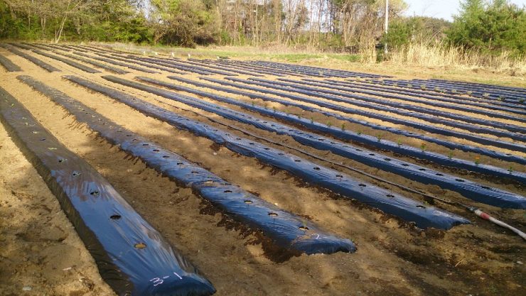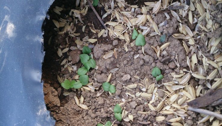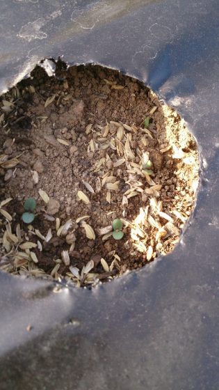 この幼苗はこの先最も元気な1~2本に間引きされ、それぞれの植え穴の代表となってゆくのです。