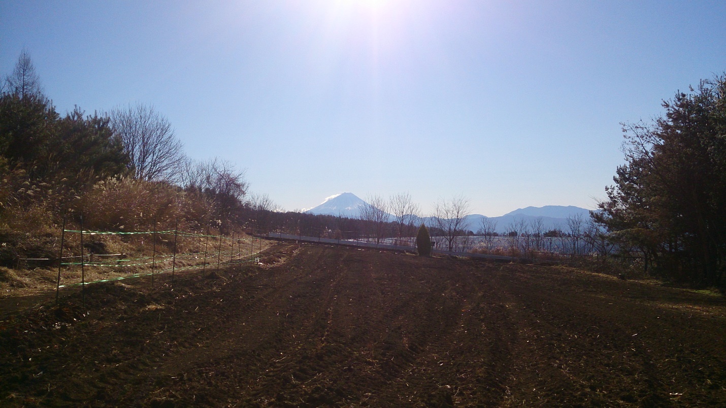 この日は防寒用支柱の再施工、冬期の耕うん、伐採した樹木の切り分けなど、寒さに震えながら作業を行いました。そんな中、乾いた圃場に散水していたら「芸術」が誕生していました。