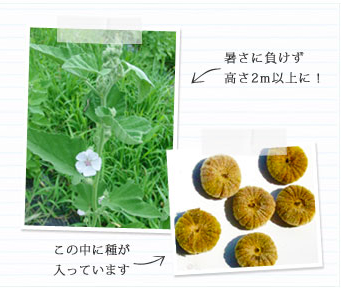 下の写真のミカンの房のようなものはあるハーブの種が集まったものですが、何の種かわかりますか?これはアルテアの種です。房の一つ一つに、まるで豆のような形の種が入っています。長さわずか2㎜ほどの種は、種まきから2年後には、高さ2mを超えるまでに成長するのです。 10月には、アルテアの根などの「秋の収穫祭」を予定しています。 それまでは、保湿成分をたっぷりと含んだ根を元気に育んでいきます。(2015年夏)