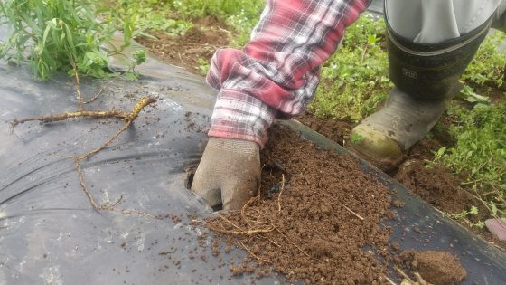 小さい根ですがしっかり収穫します。